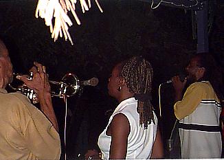 Independence weekend in Negril brought out many Kingstonians to the far western point of the island on Saturday night and Risky Business was the place to be! The massive danced on the beach and the stage while the Hard Working Band gave it their all for the festivities! Today's picture was taken from the DJ booth right behind the singers, which gives you an on stage perspective of the fun! Daily Music News: The Negril Entertainment Network has a great webcast on Saturday night at Risky Business with many people joining us online for the fun. The next webcast will be on Tuesday from the Mariner's Inn Sunset Show! Check the Negril Message Board for more information about the NEN live webcast and chat in the Negril Chat Room!
