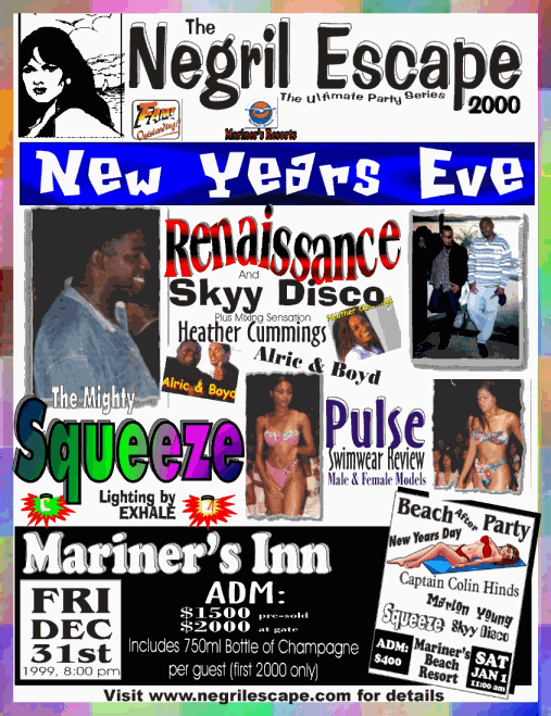 This sign for Mariner's Inn New Year's Eve Bashment explains it all! Mariner's is pulling out all the stops to provide visitors to our Caribbean playground the party of the year! Come to the cliffs and spend New Year's Eve at Mariner's Inn! For more information click here! Daily Music News: The Negril Entertainment Network has had Hurricane Lenny to deal the past few days but are back on Tuesday evening with a webcast from Mariner's Inn! Check the Negril Message Board (found on the Main Menu) around 7:00pm for the most current information on joining the live webcast and chat from Negril, Jamaica! To get to the Negril Message Board click on the Main Menu above or below and then look for the Negril Message Board link!