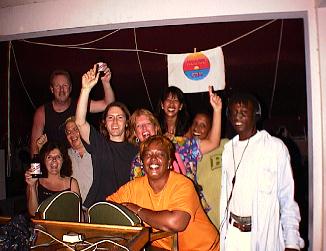 On Wednesday night the 16th of June, 1999, an unofficial "Meeting of the Board" took place at Roots Bamboo! Unbeknownst to to the Negril Entertainment Network crew, the "boarders" took over Jeanne's end of the bar at Roots and kept the fun going late into the evening. The Board that night consisted of the Rasta T's, JA Traveler, Snorkel Boy, PPPattie, Chicago Pam's Crew and Arleen! It was a great meeting of the board at Roots! Daily Music News: The Negril Entertainment Network webcast schedule continue on Thursday night at DeBuss and Friday night from Alfred's - for Arleen's 21st Birthday! It should be a great time mon! For information on how to join the NEN's Chat and Live Webcast, keep watching the Negril Message Board mon!