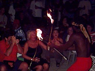 One of the fun things to do while on vacation is the audience participation events available on the island of Jamaica. Today we show one such event, the fire show at Risky Business! The crowd certainly seemed to enjoy the fire act on the beach - you can almost hear the gasps and the oohs and ahhs! Daily Music News: Speaking of Risky Business, the Negril Entertainment Network's Saturday night's webcast and chat with the Hard Working Band at Risky looks like it will be a great one! One again, be sure to check the Negril Message Board for the latest information about the live webcasts and chats in the Negril Chat Room!